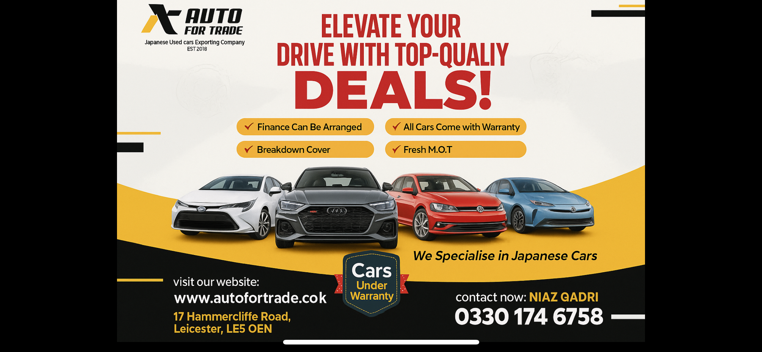 Auto for Trade is a reliable and trustworthy company that I have ever dealt with. My car came from UK via Durban, Gaborone and then it finally arrived to me in Namibia. I am very comfortable with them and he’s very trustworthy.